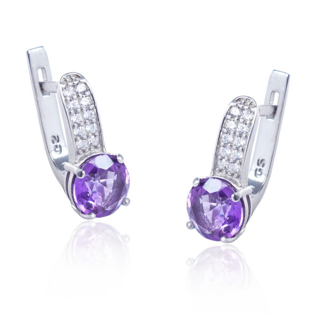 Описание Серебряные серьги со вставками аметиста и циркония 041-6210