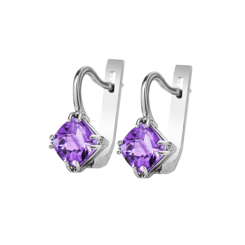Описание Серебряные серьги со вставками розового аметиста 072-63