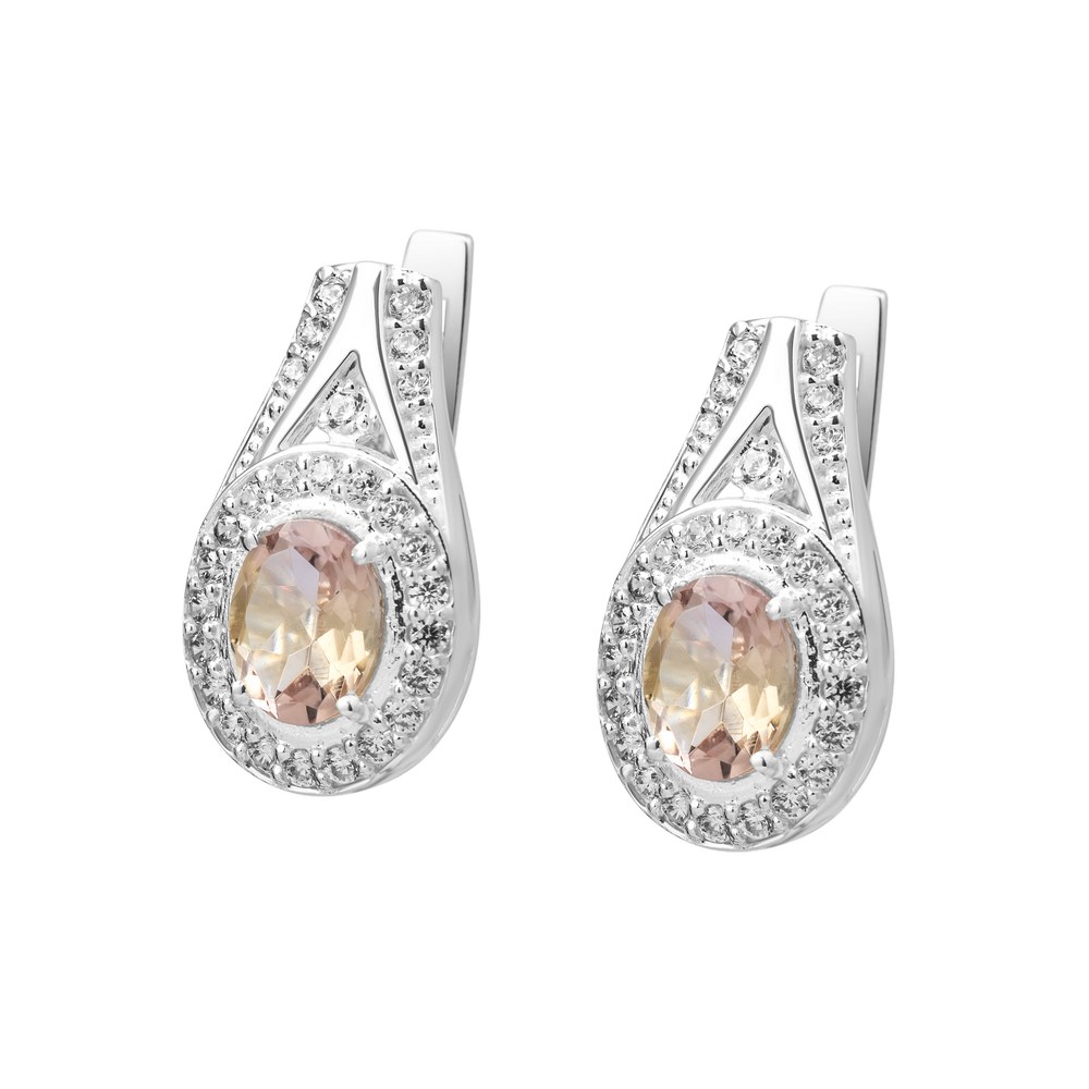 Серебряные серьги со вставками аметрины и фианитами