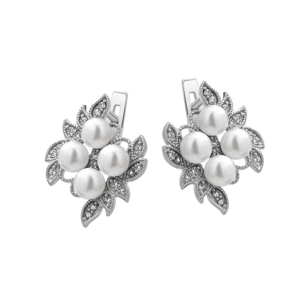 Серебряные серьги со вставками белой жемчужины культивируемой и фианитами