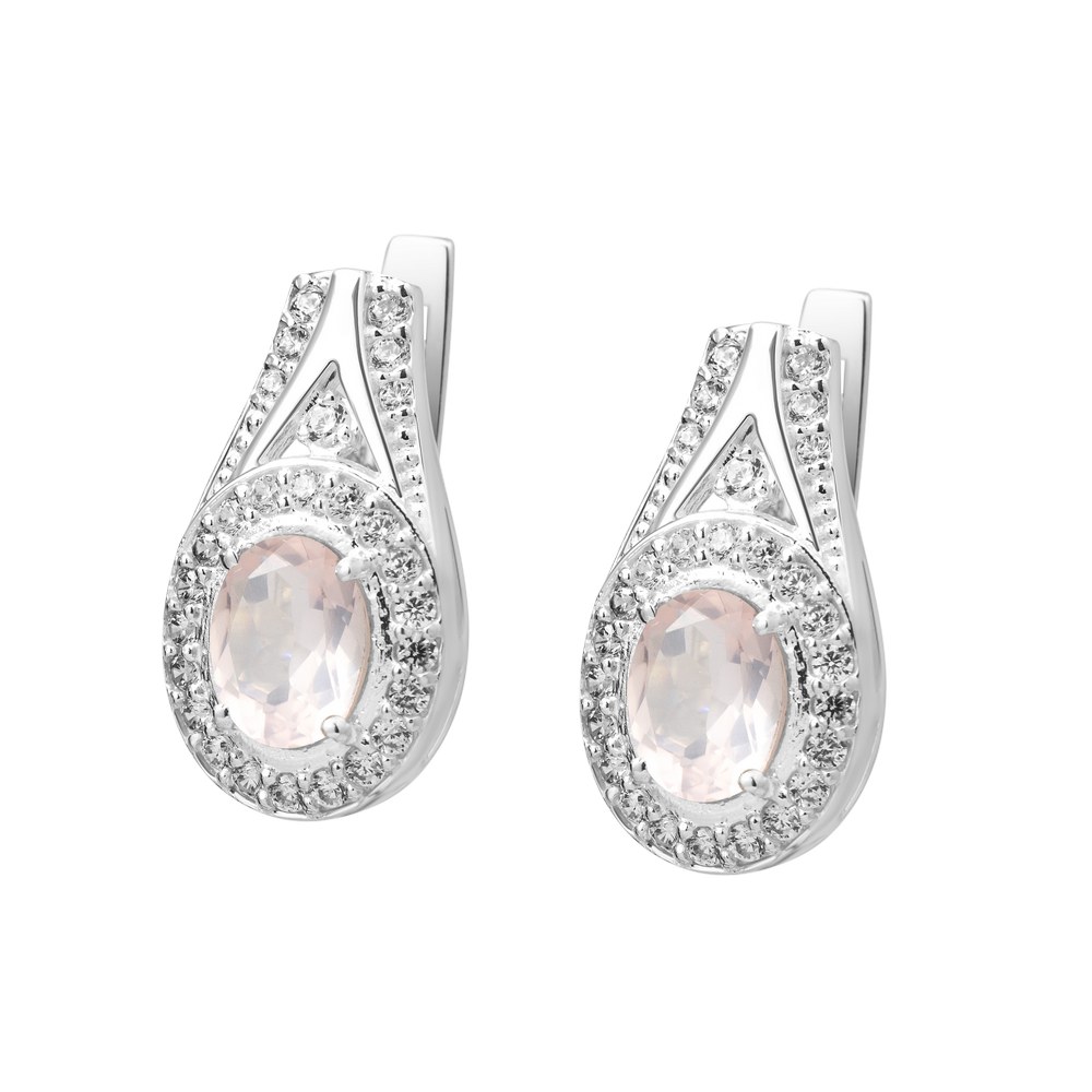 Серебряные серьги со вставками розового кварца и фианитами