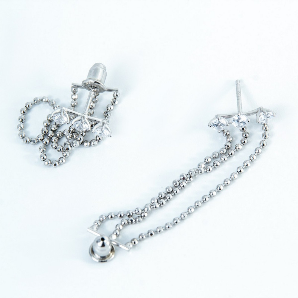 Описание Срібні сережки з підвісками зі вставками фіанітів 02-00010-10
