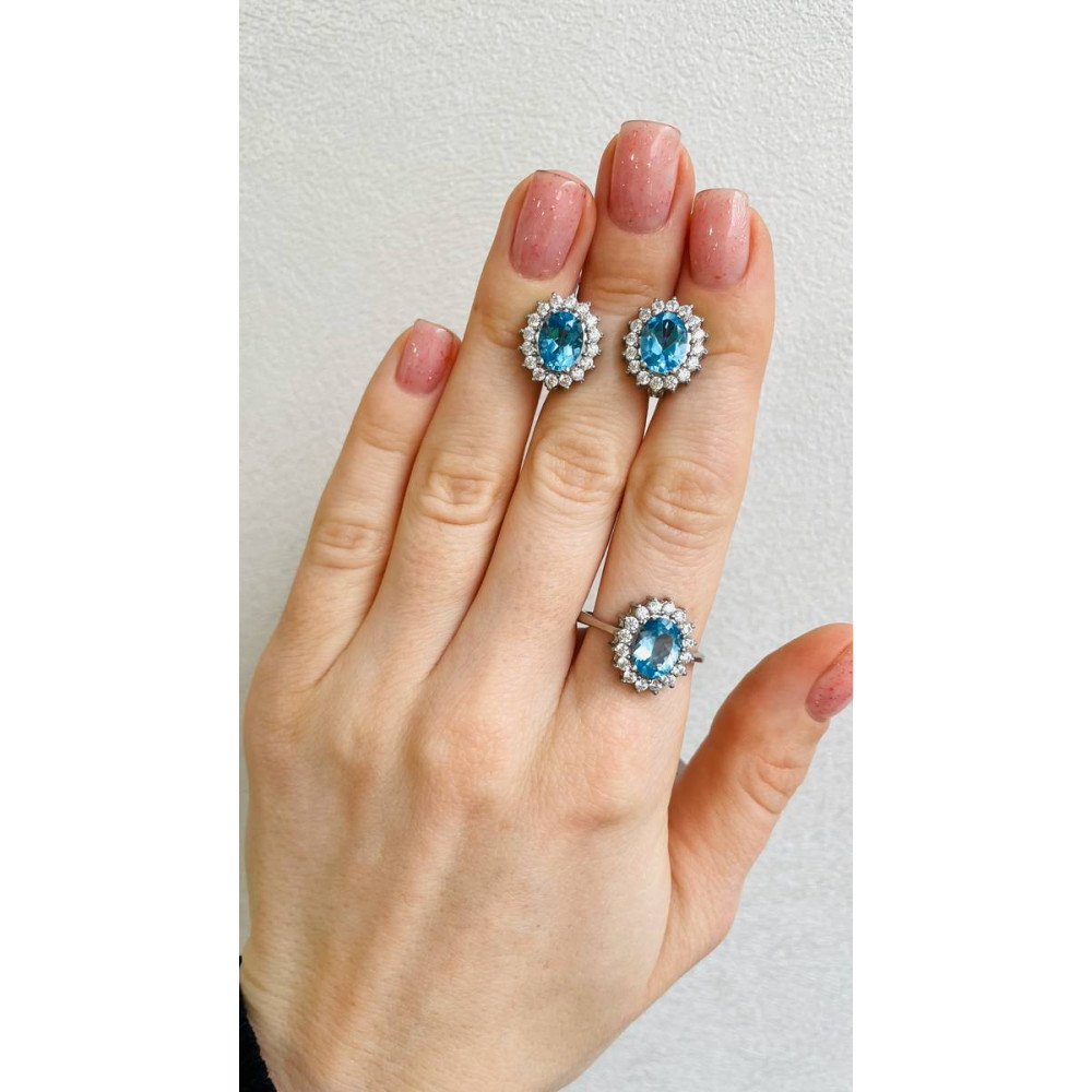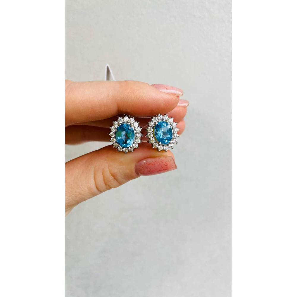 Описание Срібні сережки з свіс топазом та фіанітом 085-3010