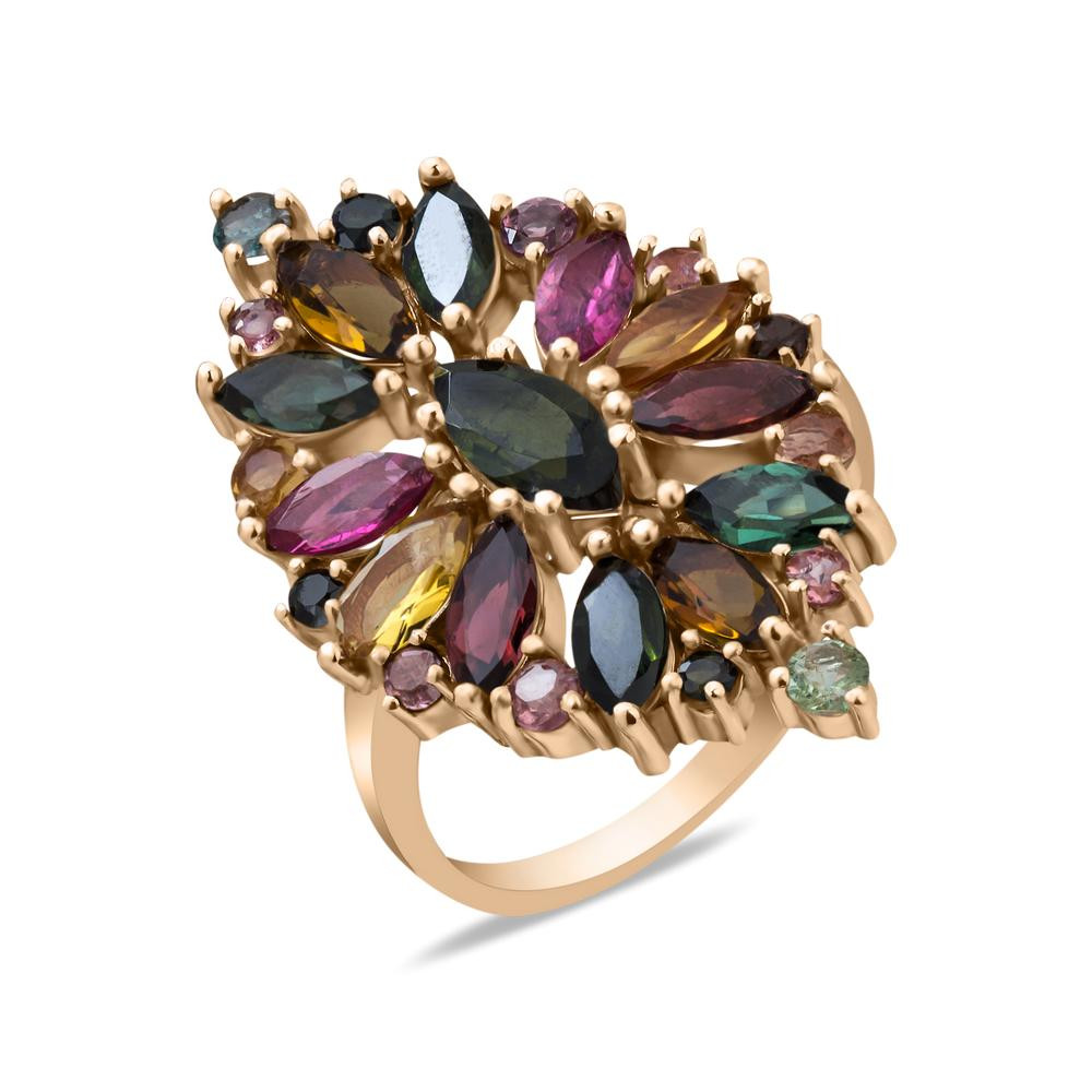 Жіноча золота каблучка з вставками турмаліну