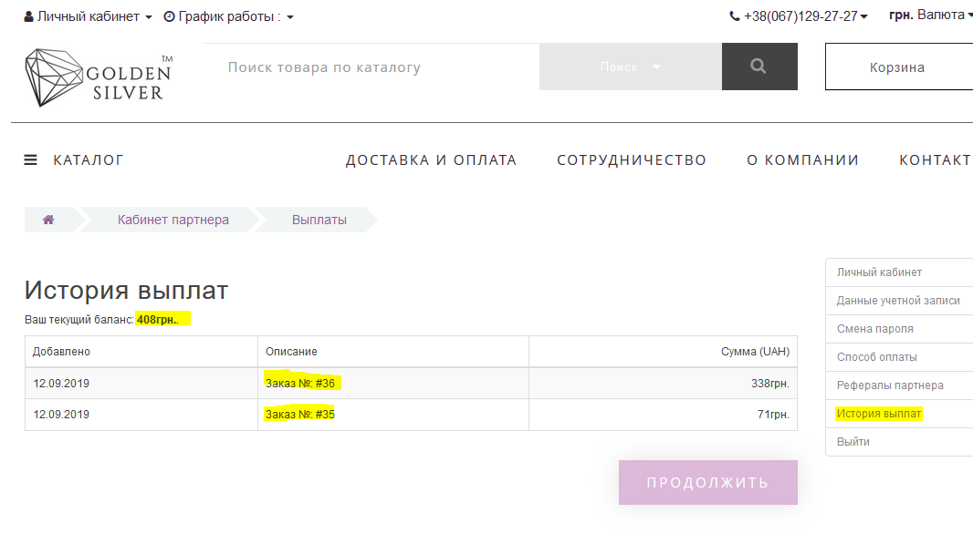 У Вас як у партнера буде свій окремий кабінет - окремий від кабінету покупця.