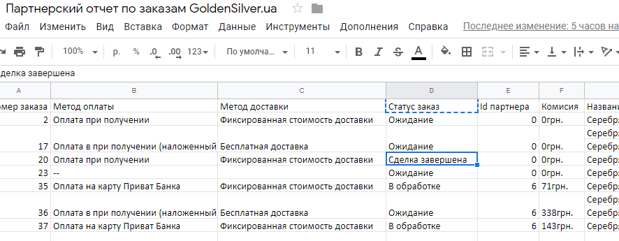 Всі замовлення будуть щотижня розвантажуватися в таблицю доступну за посиланням з будь-якого пристрою.