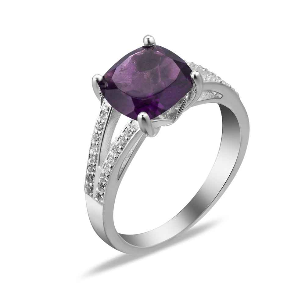 Жіноча срібна каблучка зі вставками аметисту і фіанітами