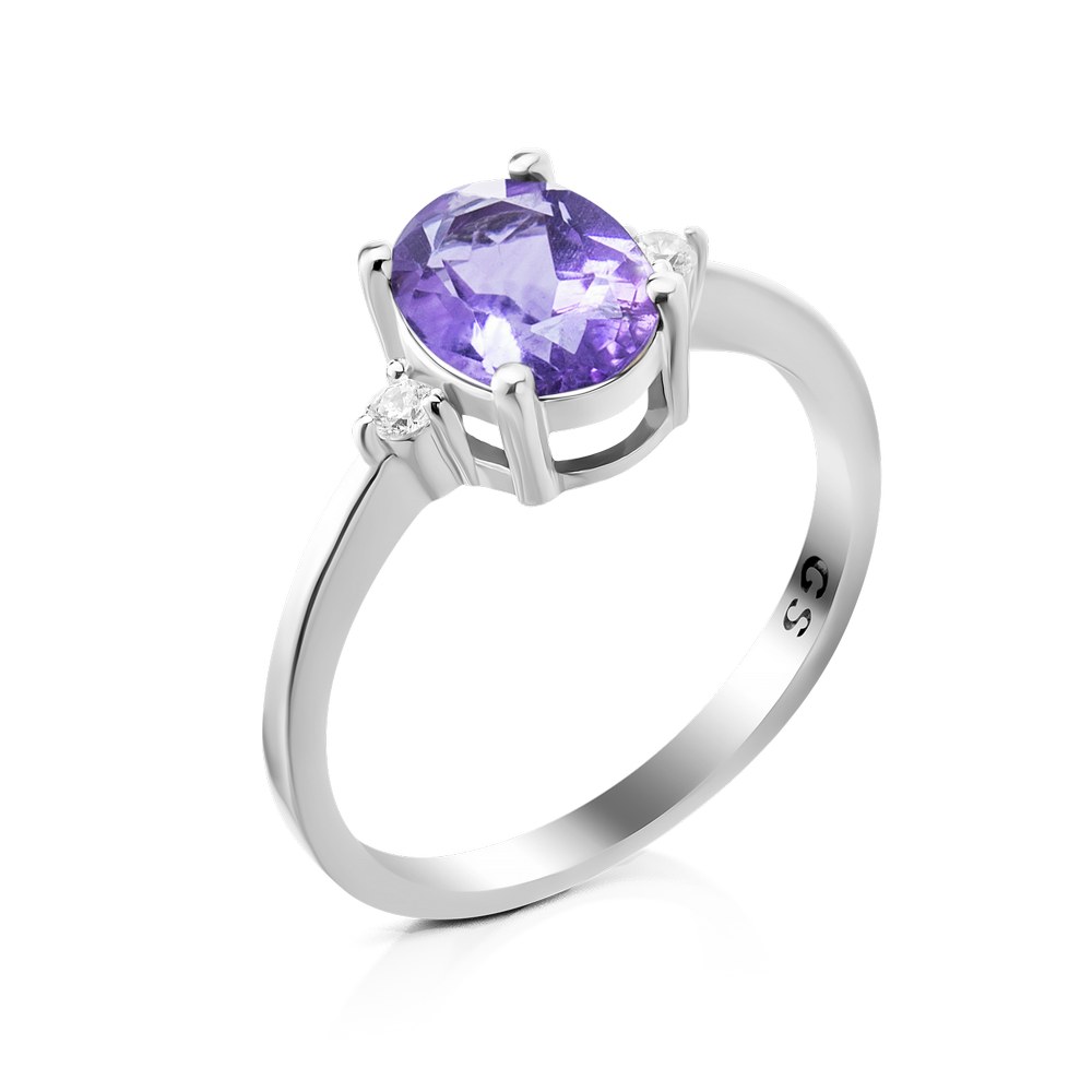 Опис Срібна каблучка з аметистом та фіанітом 018-6210