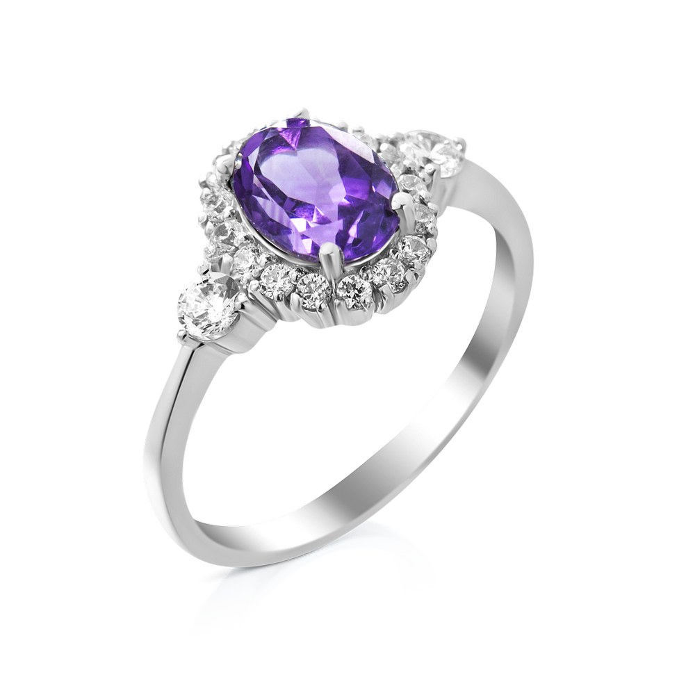 Опис Срібна каблучка з аметистом бразильським та фіанітом 014-6110