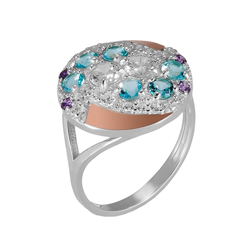 Жіноча срібна каблучка зі вставками золота і куб. цирконію