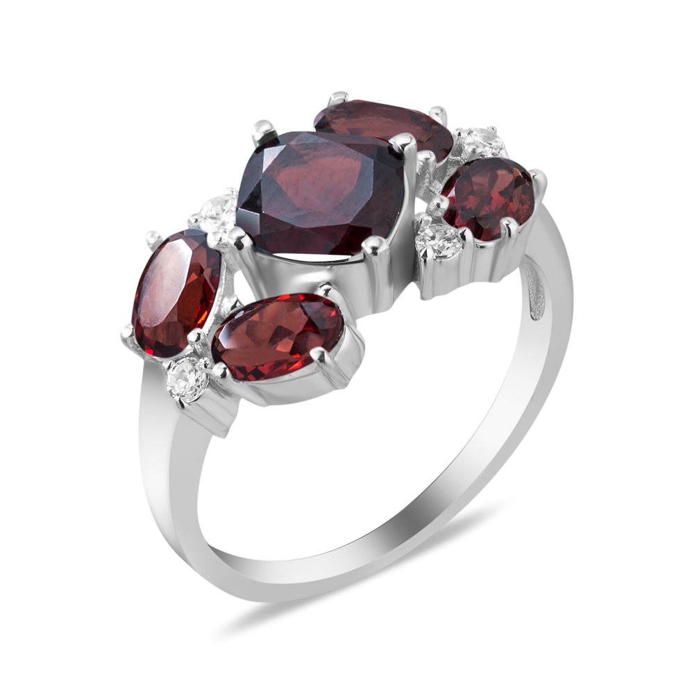 Жіноча срібна каблучка зі вставками граната і фіанітами