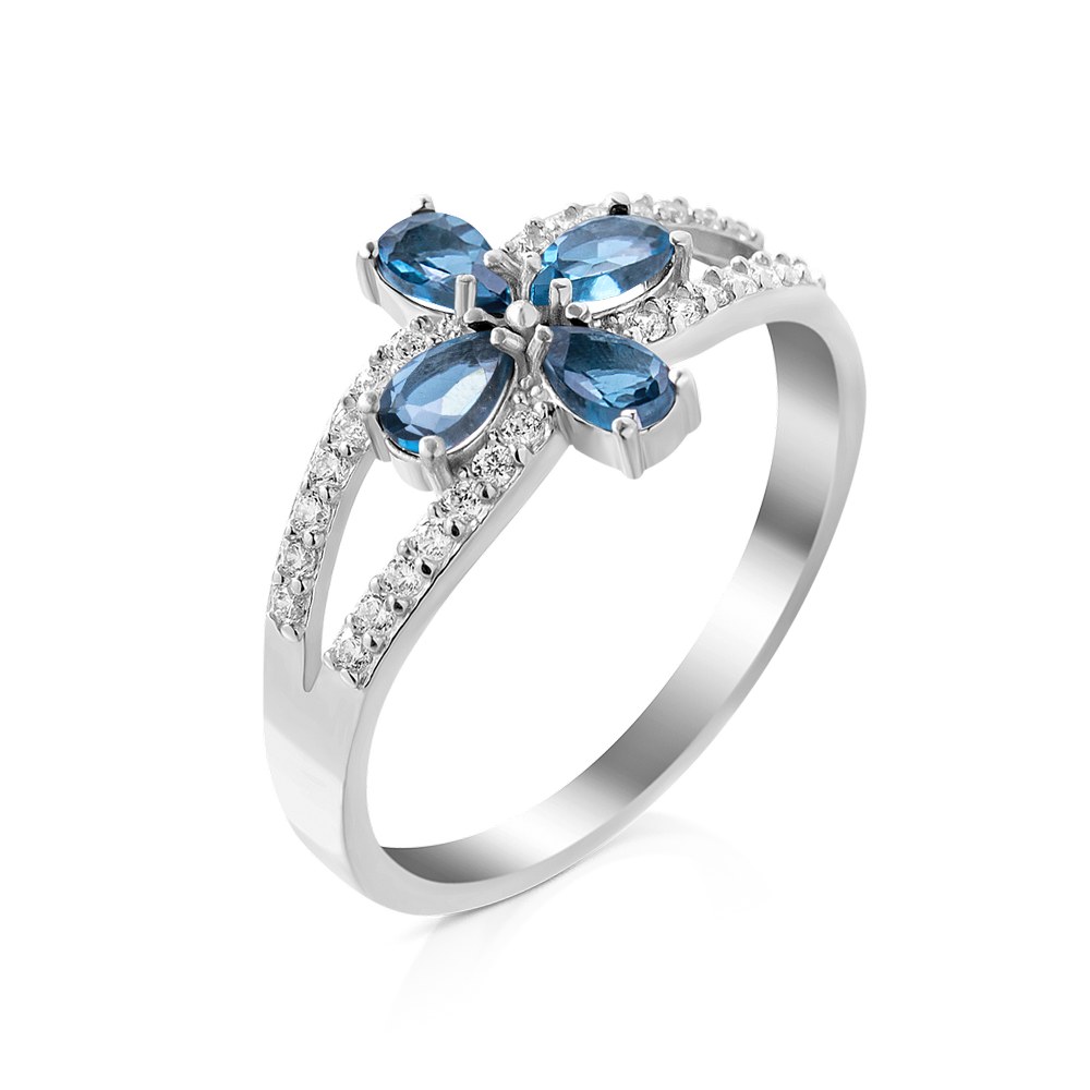 Опис Срібна каблучка з лондон топазом та фіанітом 028-3310