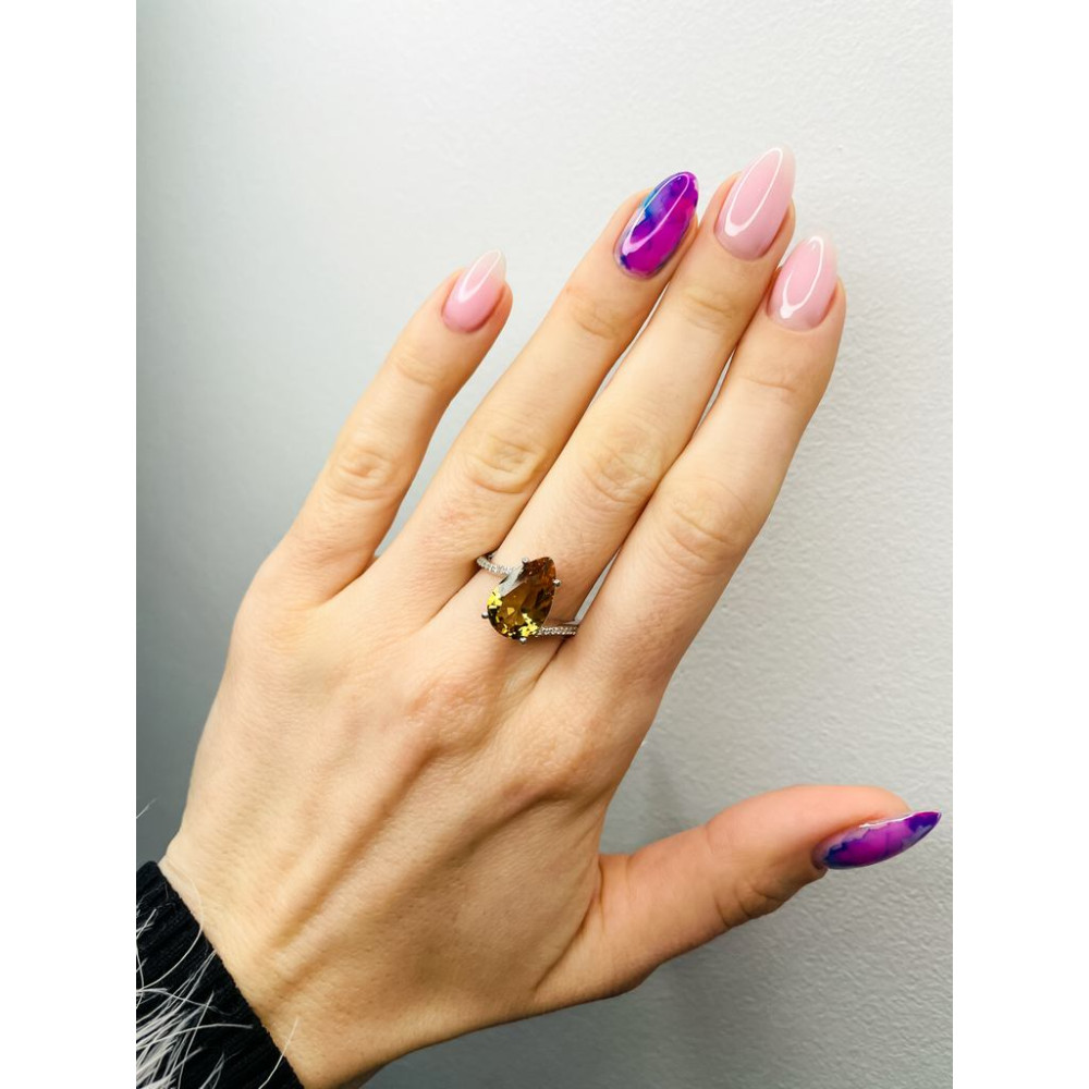 Жіноча срібна каблучка зі вставками нано султаніту і фіанітів