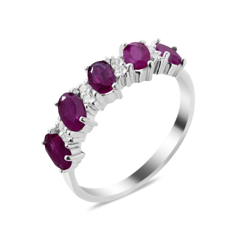 Жіноча срібна каблучка зі вставками рубіну і фіанітів