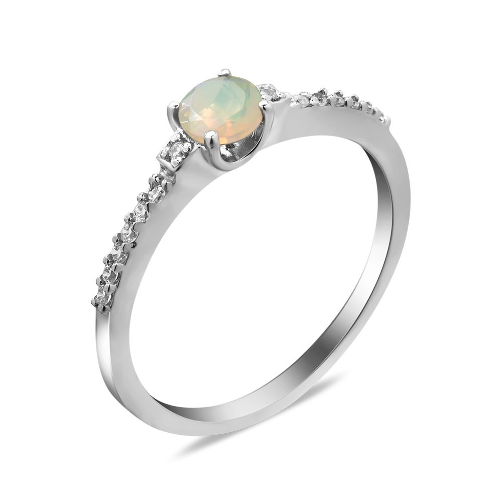 Жіноча срібна каблучка зі вставками опалу і фіанітів