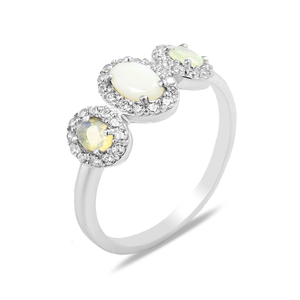 Жіноча срібна каблучка зі вставками опалу і куб. цирконію