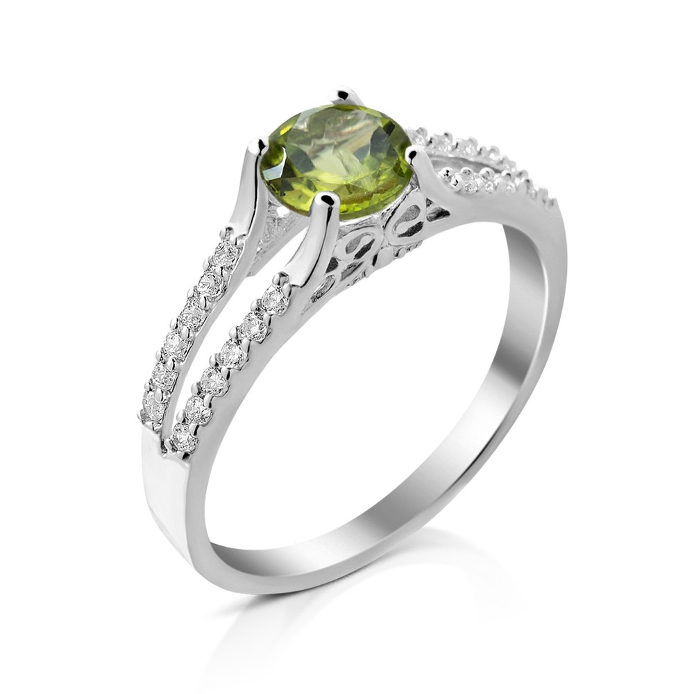 Жіноча срібна каблучка зі вставками перидоту і фіанітів