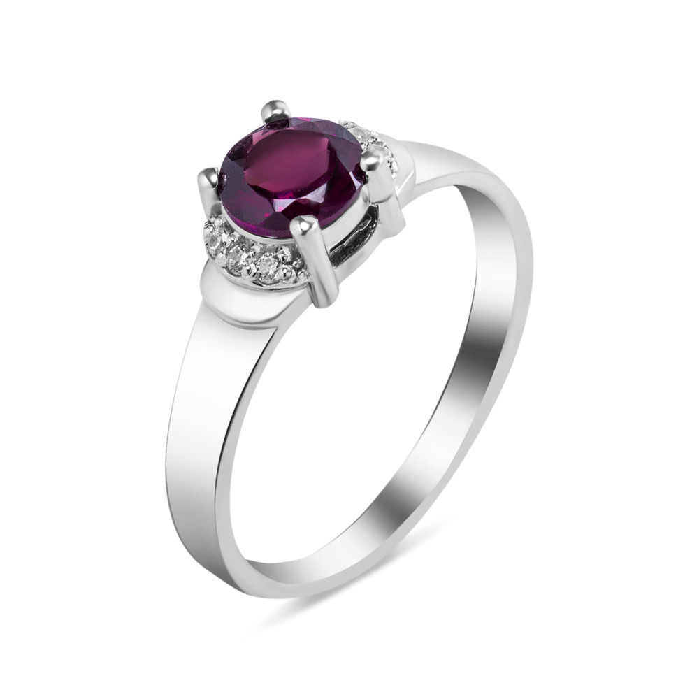 Жіноча срібна каблучка зі вставками рубіну і фіанітів