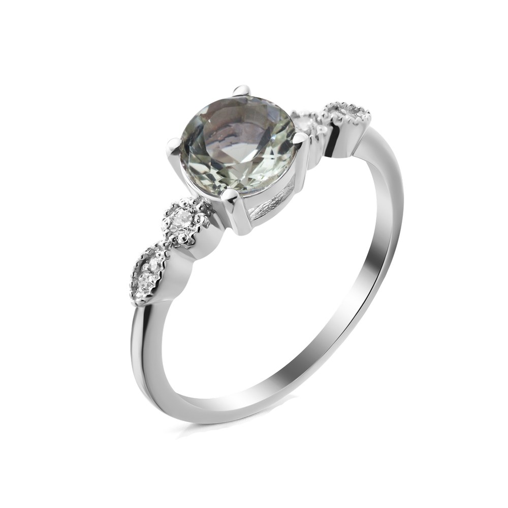 Опис Срібна каблучка з зеленим кварцем та фіанітом 100-6410