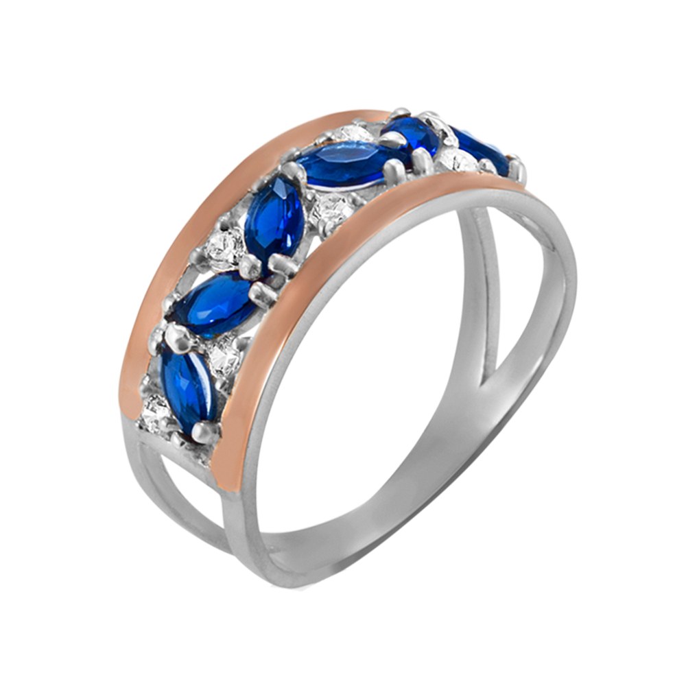 Жіноча срібна каблучка зі вставками золота і куб. цирконію