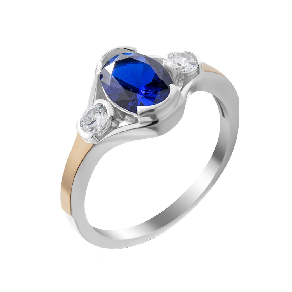Жіноча срібна каблучка зі вставками золота і куб. цирконію