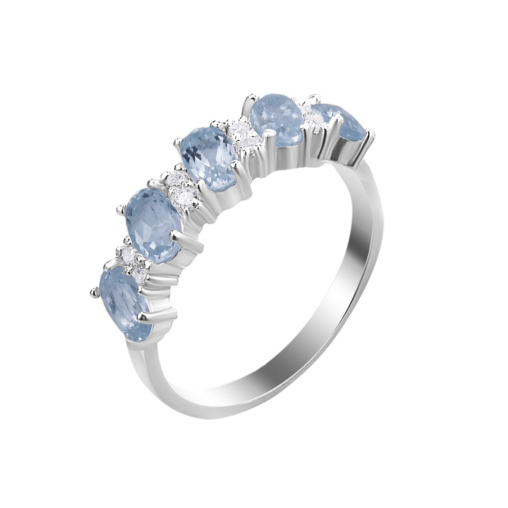 Жіноча срібна каблучка зі вставками скай топазу і куб. цирконію