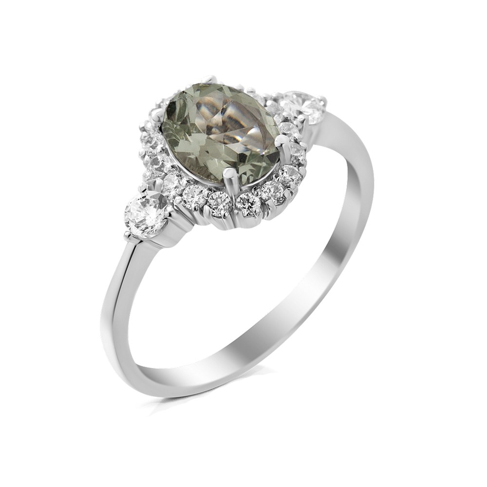 Опис Срібна каблучка з зеленим кварцем та фіанітом 014-6410