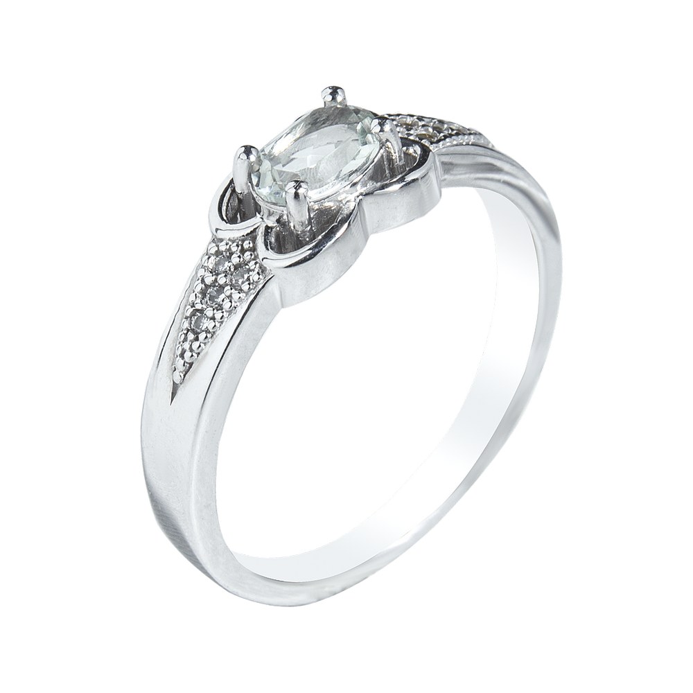 зелений кварц 4х6 "овал" / фіаніт 1,1 "кругла"