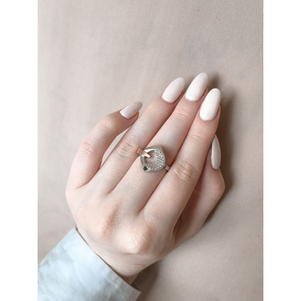 Жіноча срібна каблучка з вставками золота і фіанітів