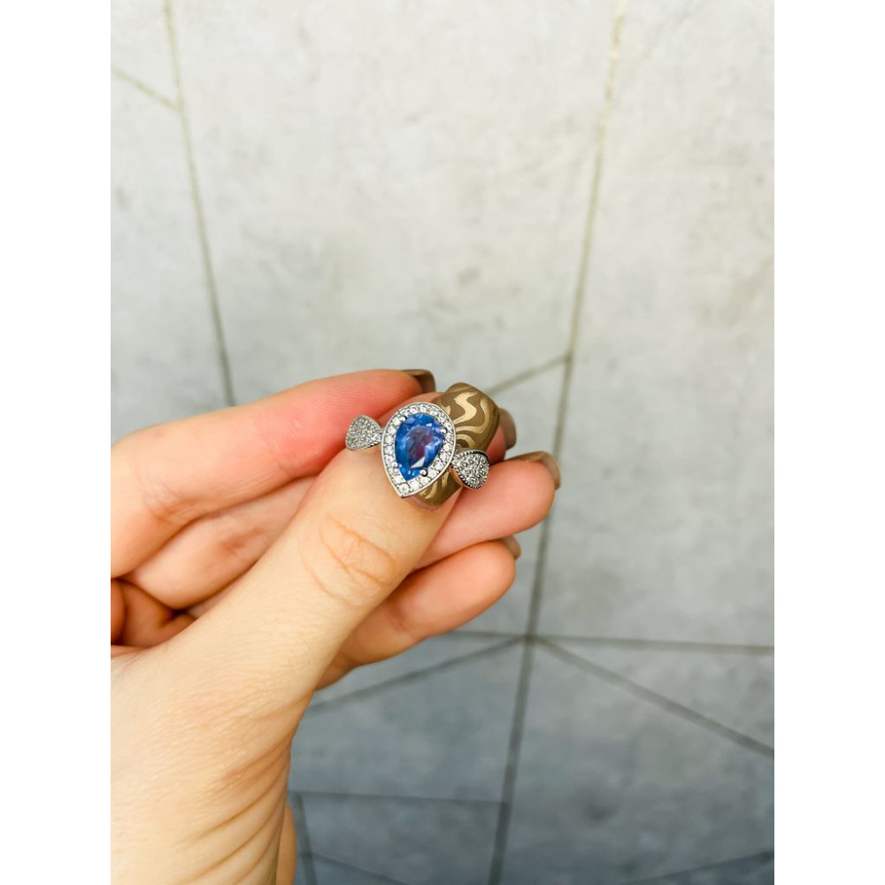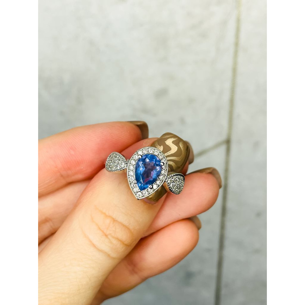 Жіноча срібна каблучка з вставками флюорит блу джон і фіанітами