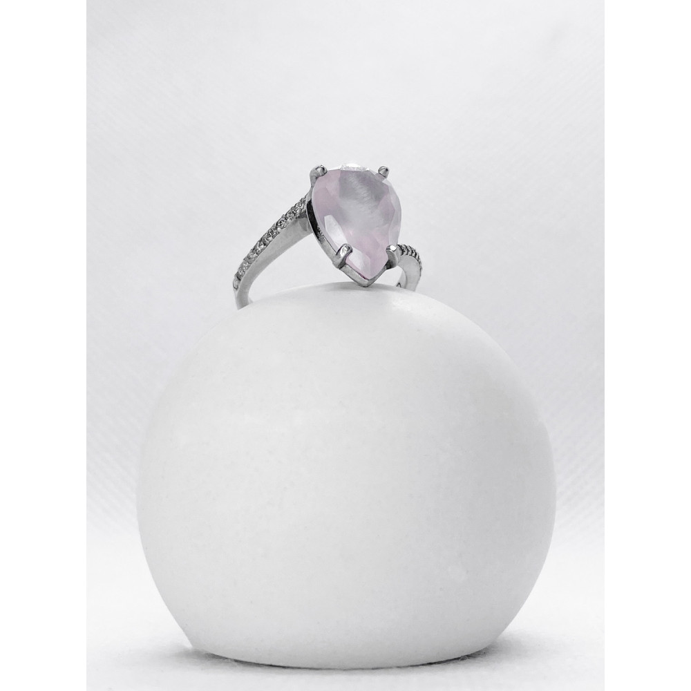 Опис Срібна каблучка з рожевим кварцем та фіанітом 091-4610