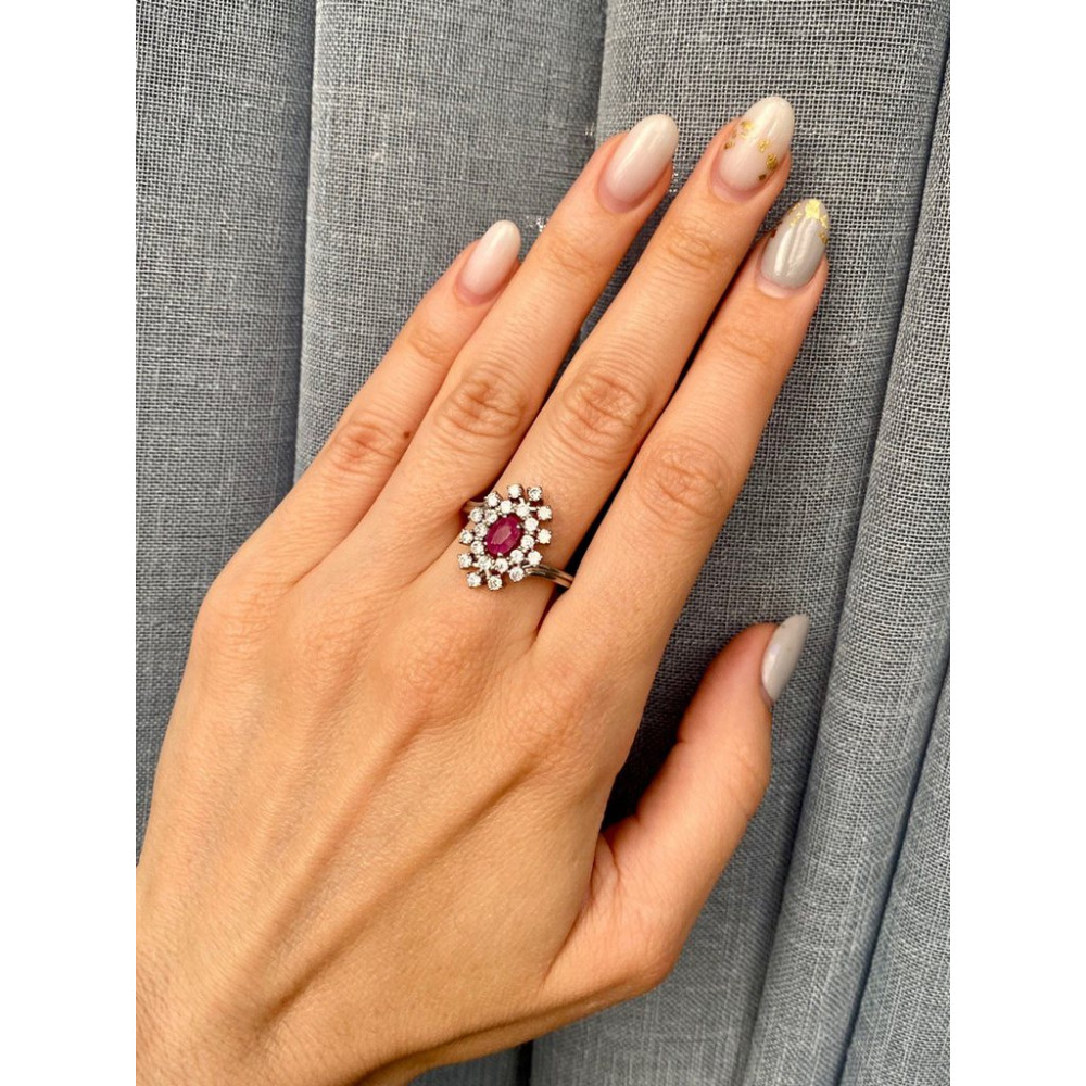 рубін 4х6 овал, фіаніт 2 коло
