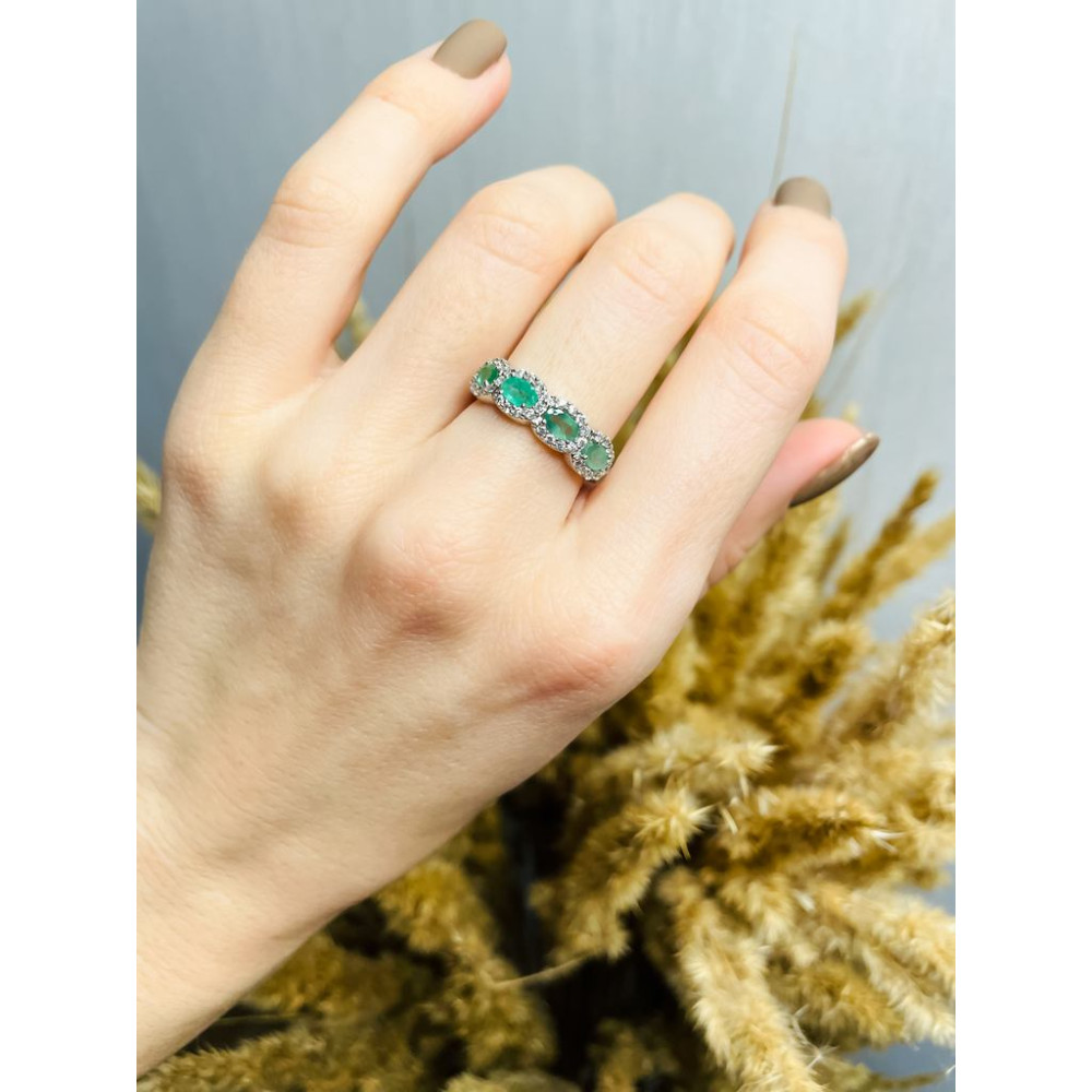 Жіноча срібна каблучка з вставками смарагдів і фіанітів