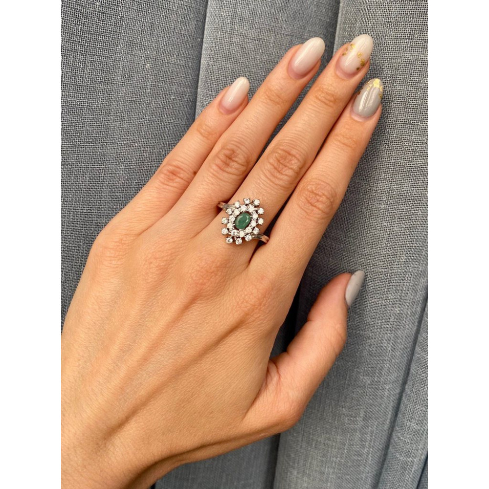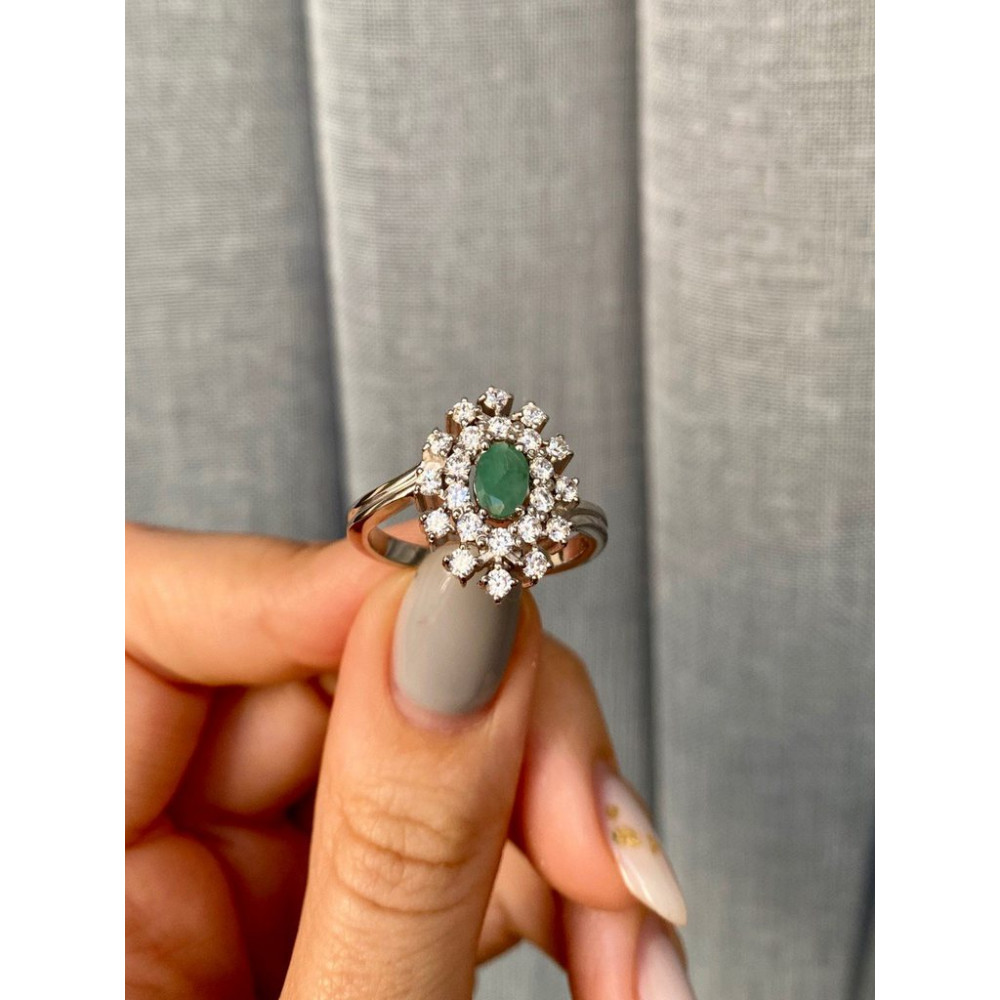 Опис Срібна каблучка з смарагдом та фіанітом 010-7110