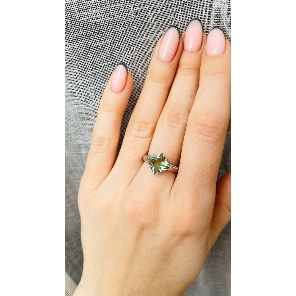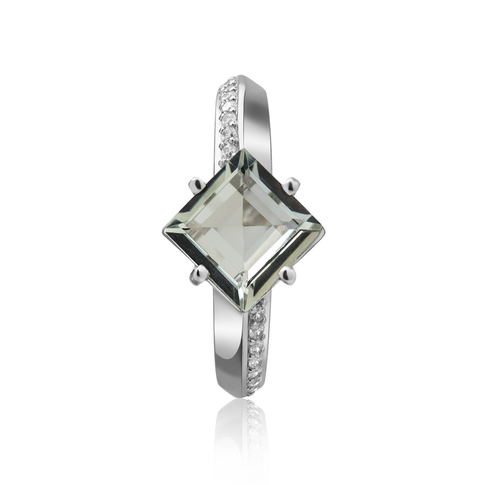 Опис Срібна каблучка з зеленим кварцем та фіанітом 092-6410