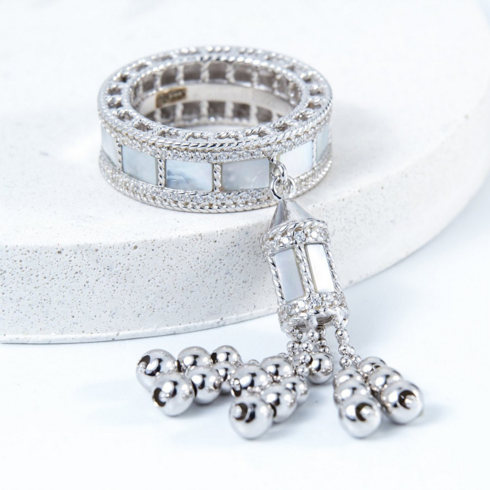 Опис Срібна каблучка зі вставками білого перламутра 01-00017-9010