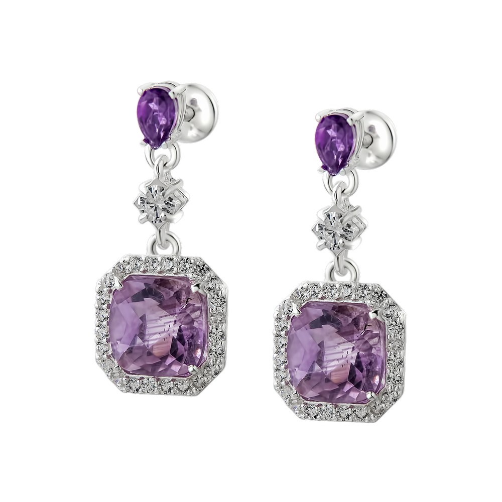 Основні характеристики Срібні сережки з аметистом та фіанітом 110-6210