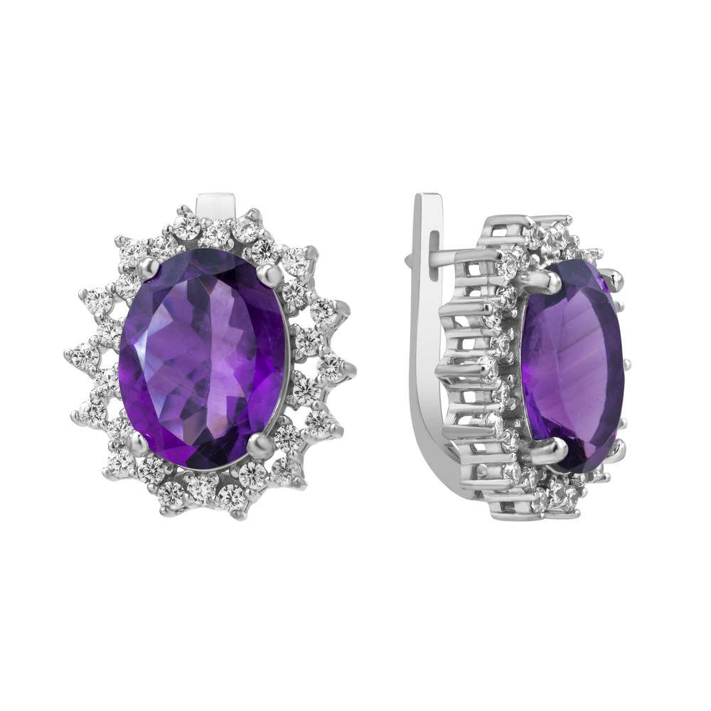 Опис Срібні сережки з аметистом бразильським та фіанітом 170-6110