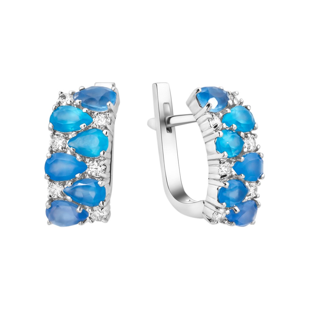 Жіночі срібні сережки зі вставками блакитного кварцу і фіанітами