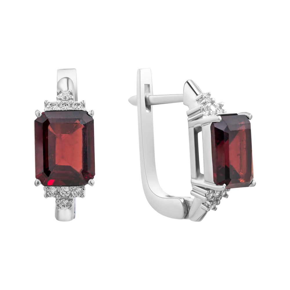 Опис Срібні сережки з гранатом та фіанітом 103-4110