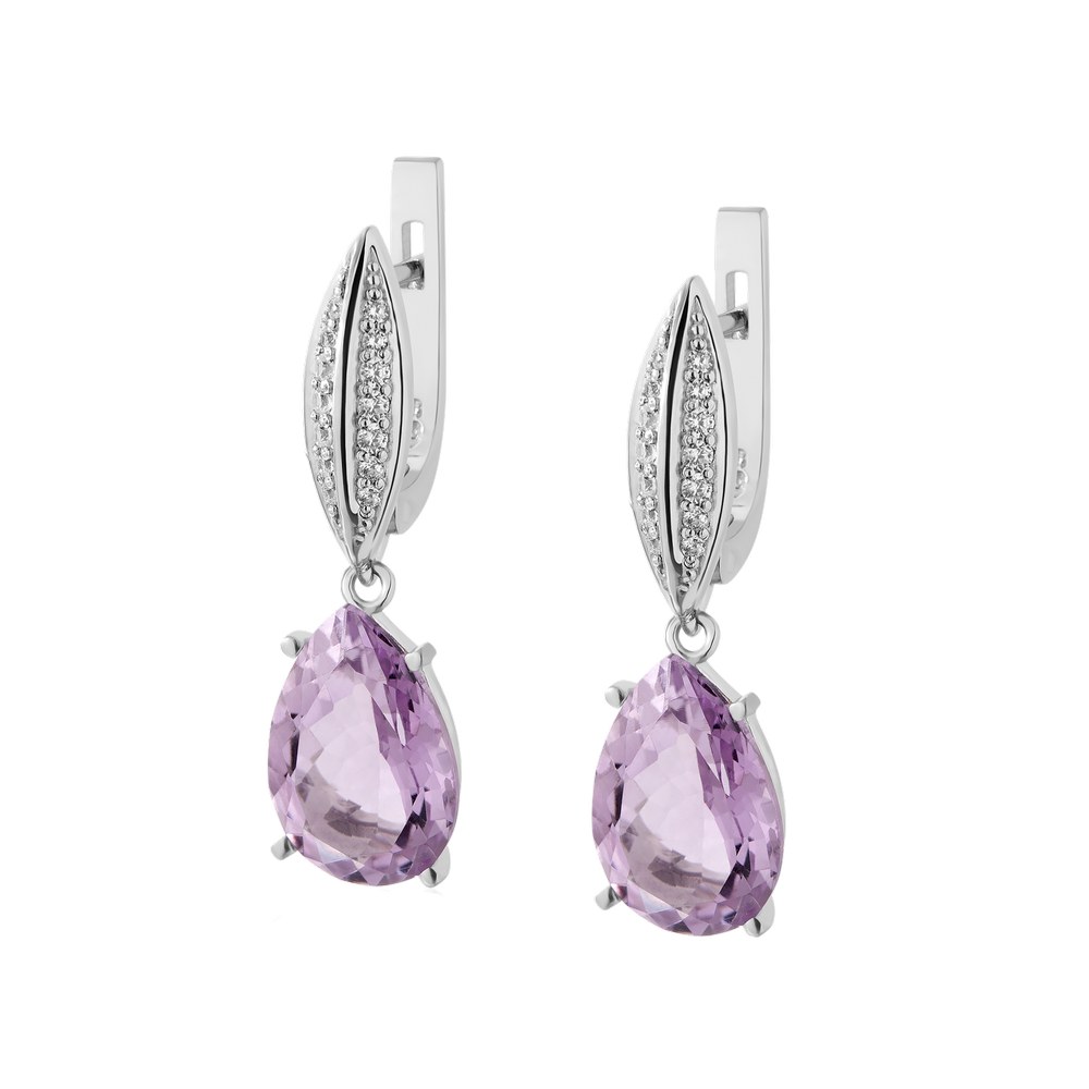 Опис Срібні сережки з рожевим аметистом та фіанітом 091-6310