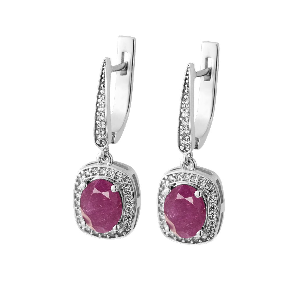 Опис Срібні сережки з рубіном та фіанітом 060-4410