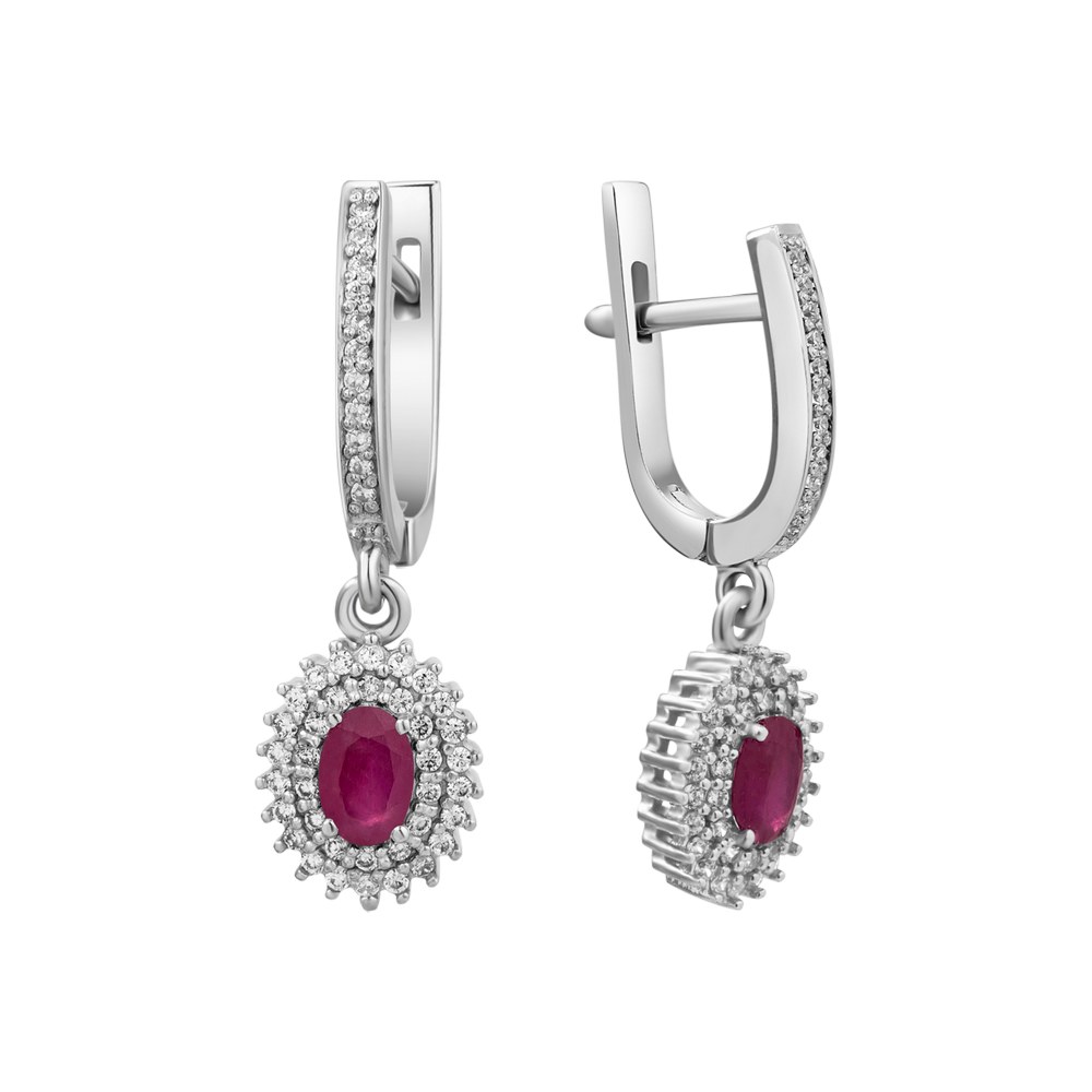 Опис Срібні сережки з рубіном та фіанітом 086-4410