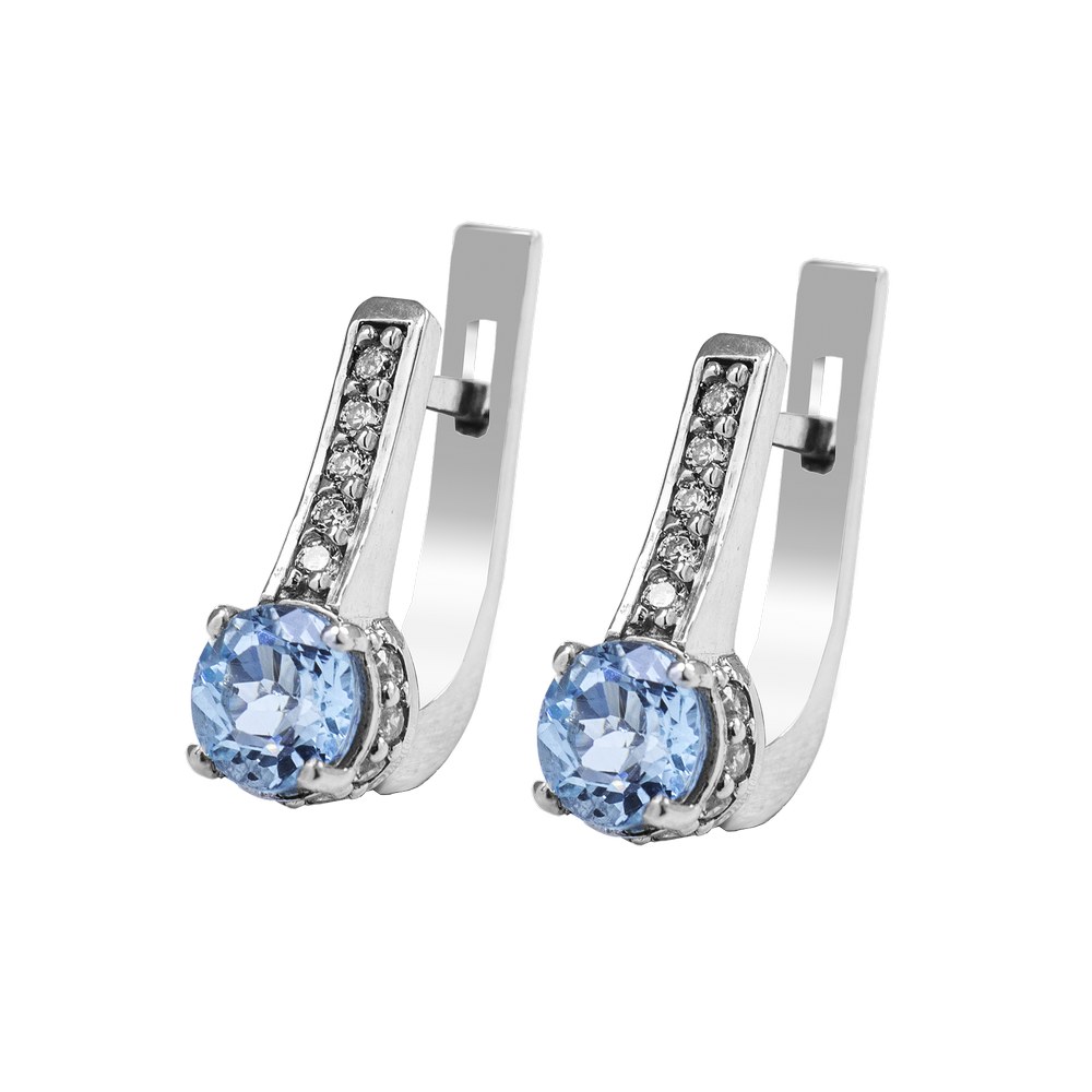 Опис Срібні сережки з скай топазом та фіанітом 040-3910