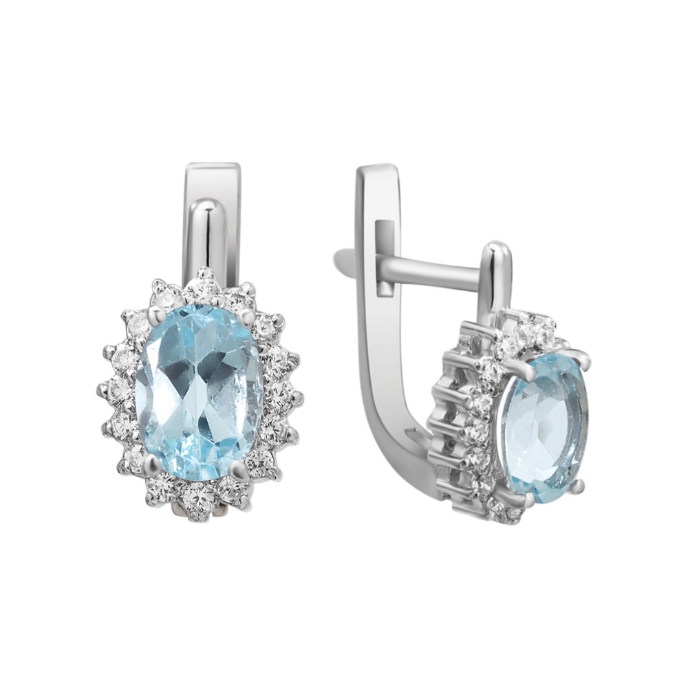 Опис Срібні сережки з скай топазом та фіанітом 134-3910
