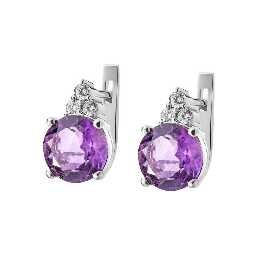 Опис Срібні сережки з аметистом та фіанітом 101-6210