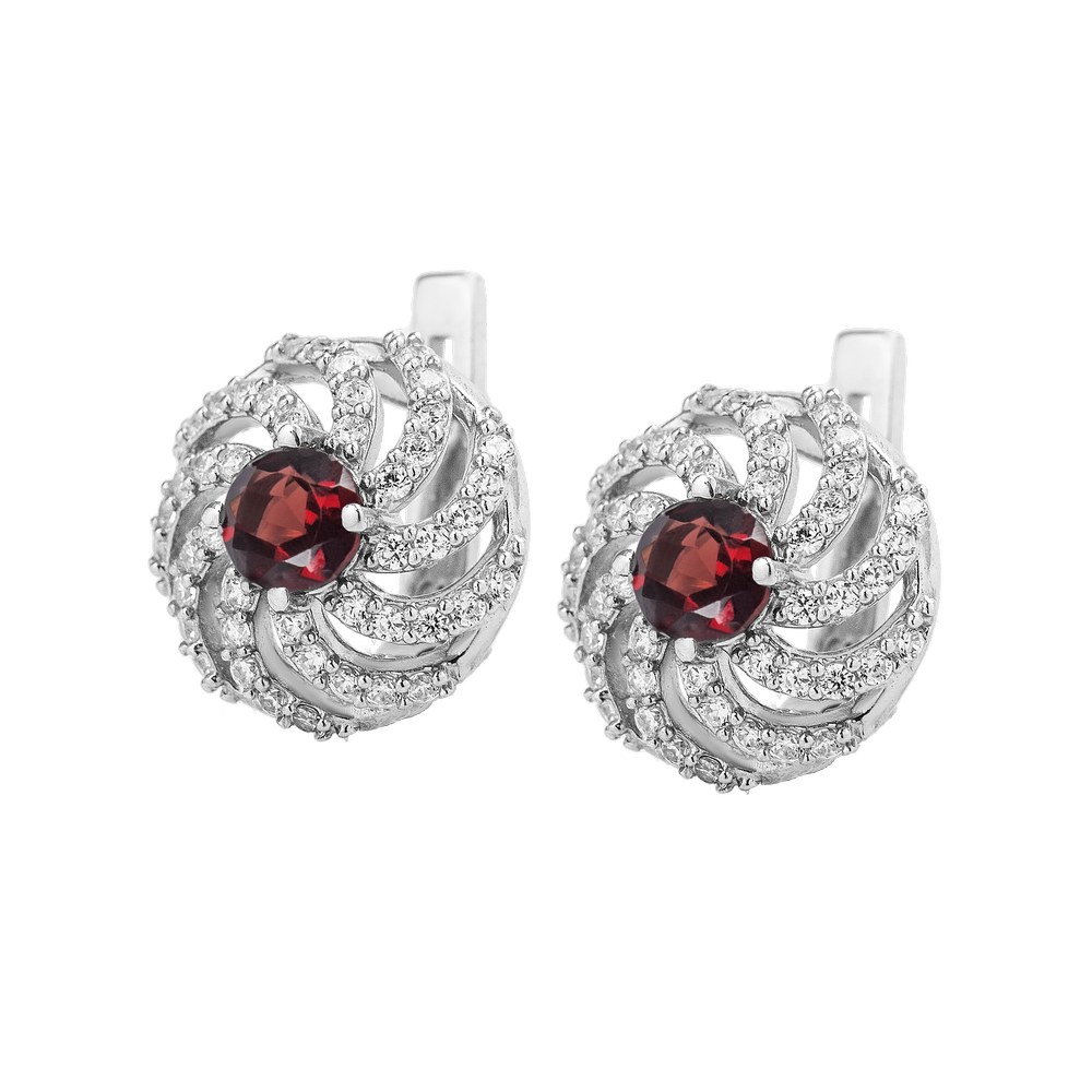 Опис Срібні сережки з гранатом та фіанітом 082-4110