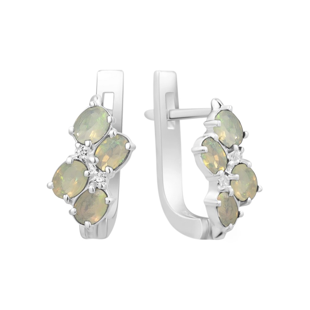 Опис Срібні сережки з опалом та фіанітом 070-5510