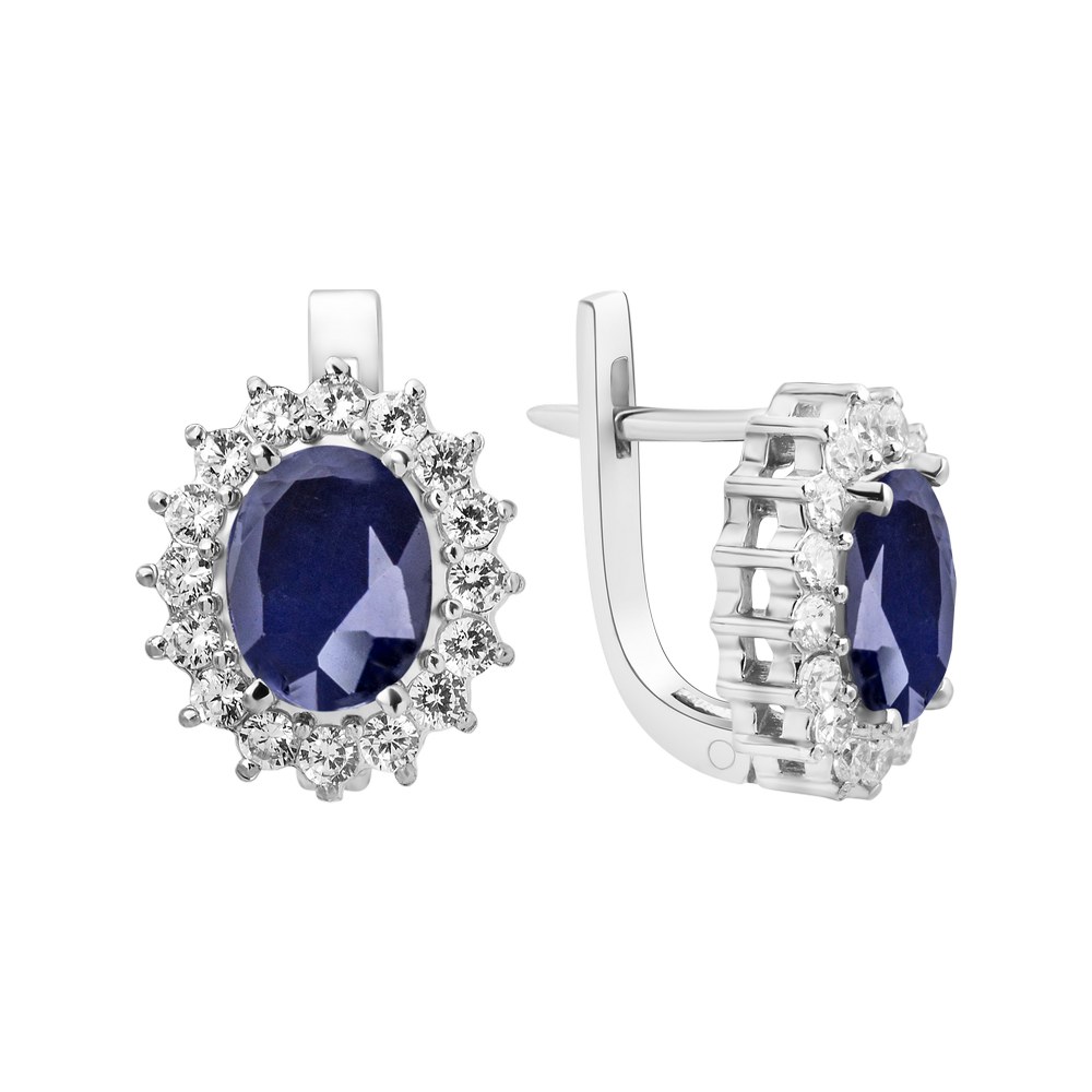 Опис Срібні сережки з сапфіром та фіанітом 085-3110