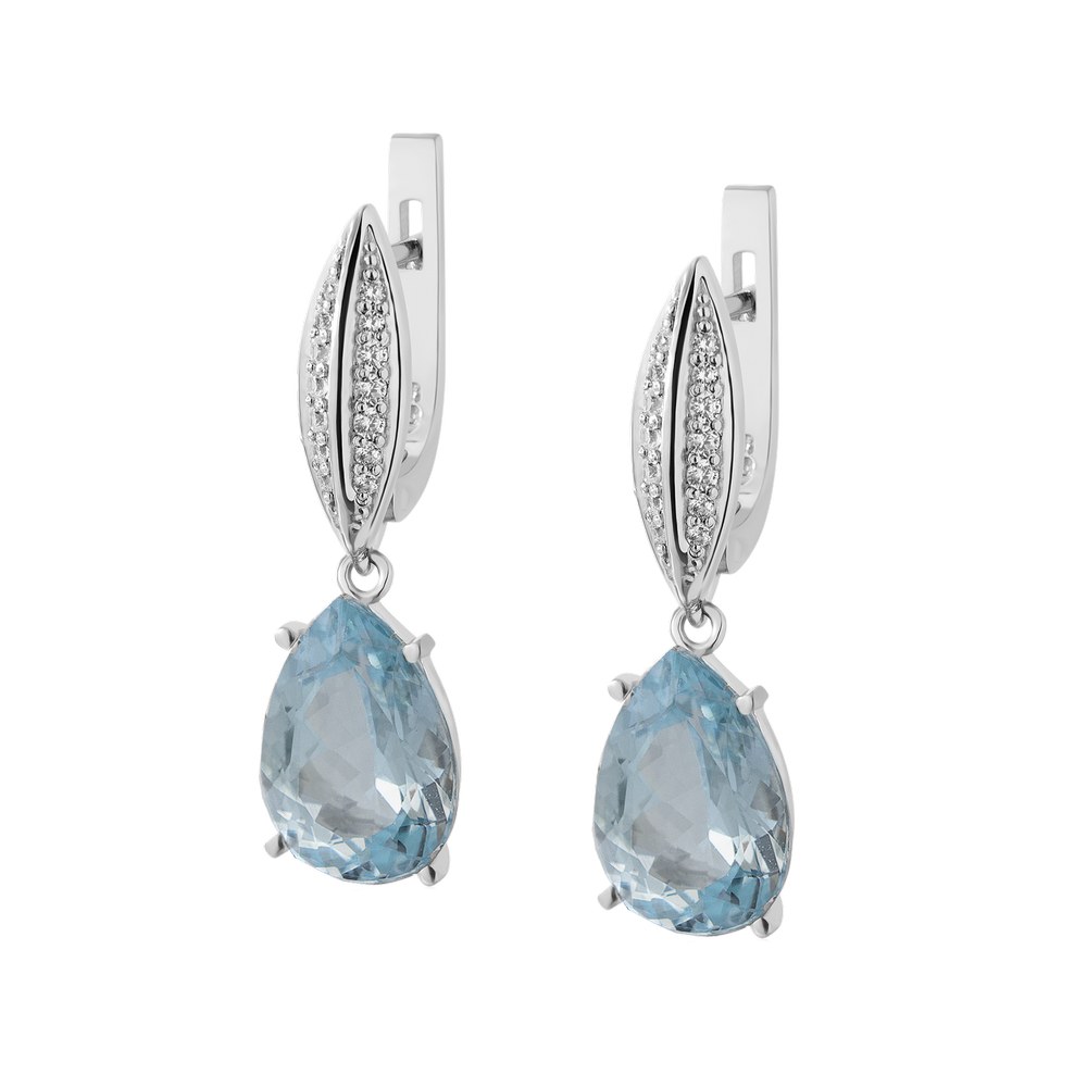 Опис Срібні сережки з скай топазом та фіанітом 091-3910
